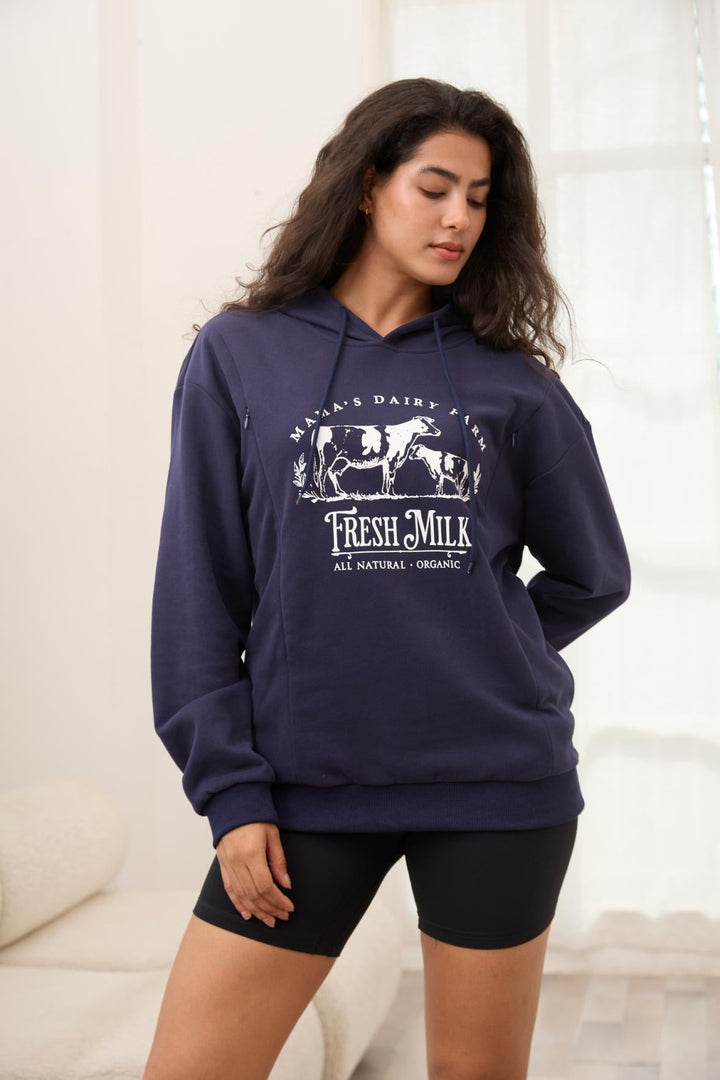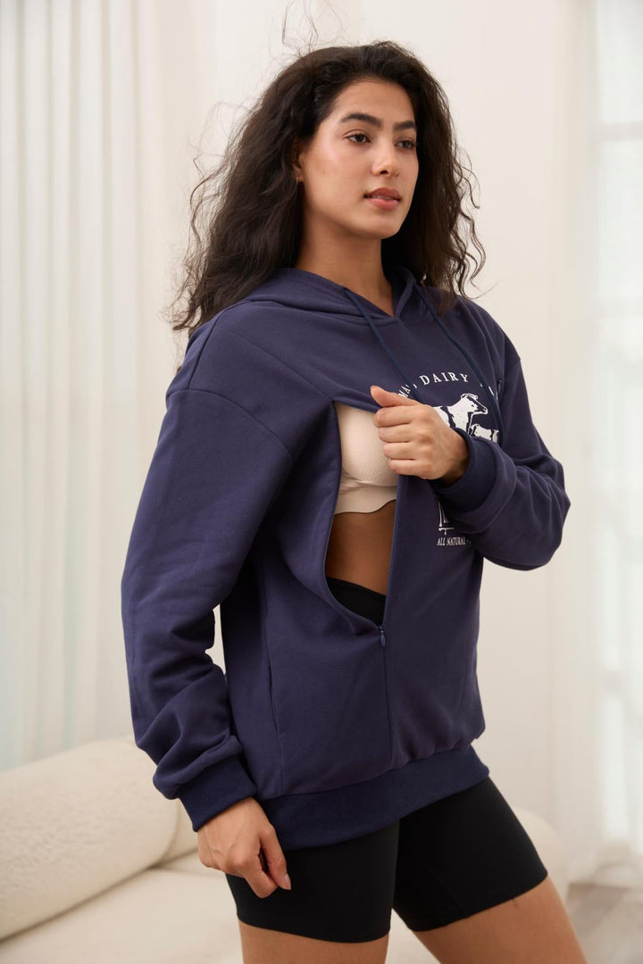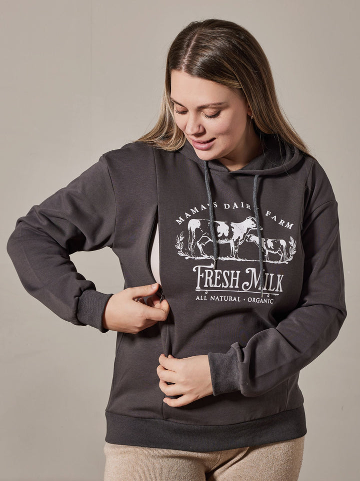 Mama’s Dairy Farm Fleece Nursing Hoodie with Hidden Zippers