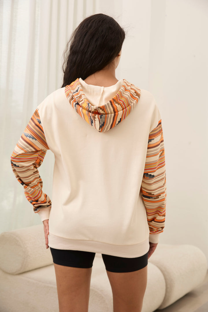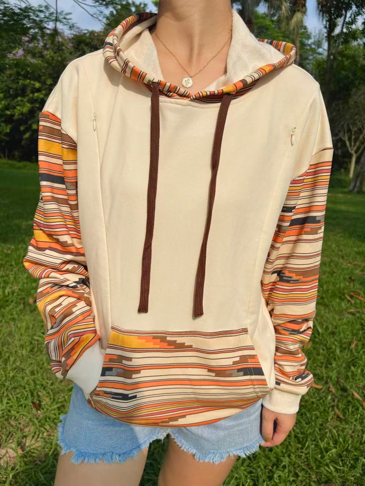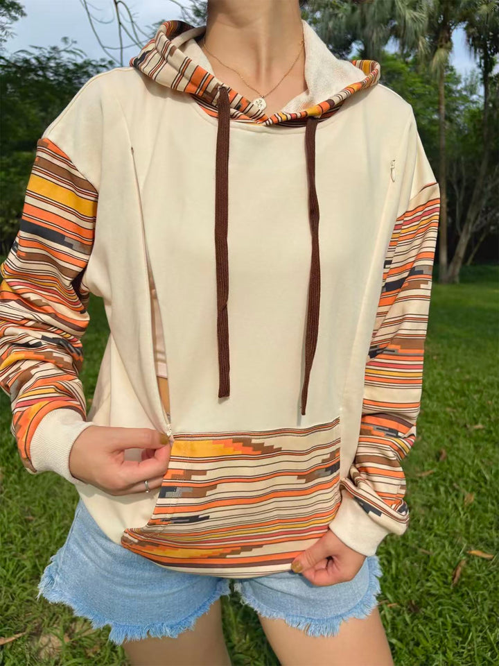 This stylish hoodie is the perfect addition to any breastfeeding wardrobe. It has hidden zips on each side to allow for easy access for nursing. The subtle print is color-blocked for extra versatility. Lined hood with adjustable drawcord;